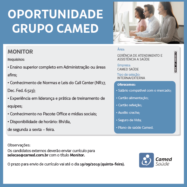 Camed Saúde seleciona Monitor em Fortaleza/CE. Inscreva-se!